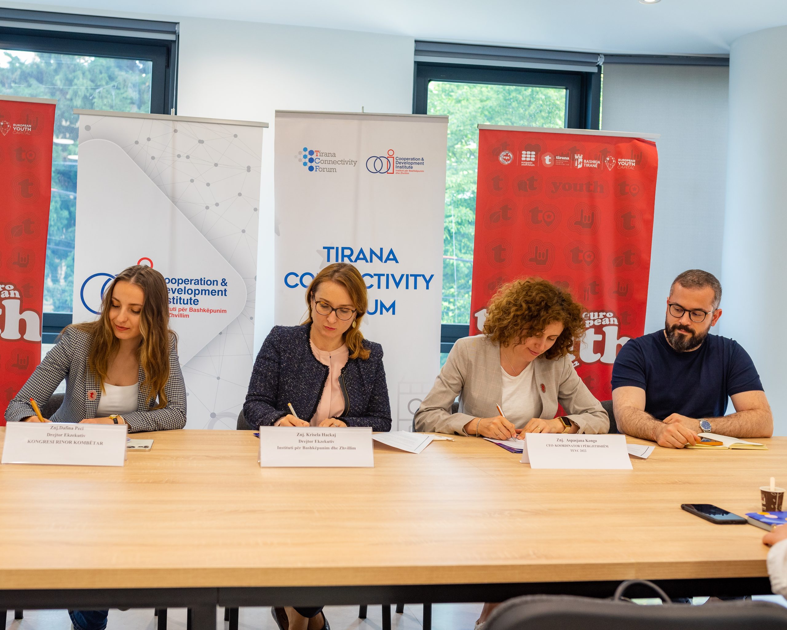 Through this memorandum, the parties agreed on the participation of Tirana EYC 2022 in the 8th edition of the Tirana Connectivity Forum (TCF) to strengthen and intensify cooperation between the parties during the implementation of the program “Tirana European Capital of Youth 2022”.