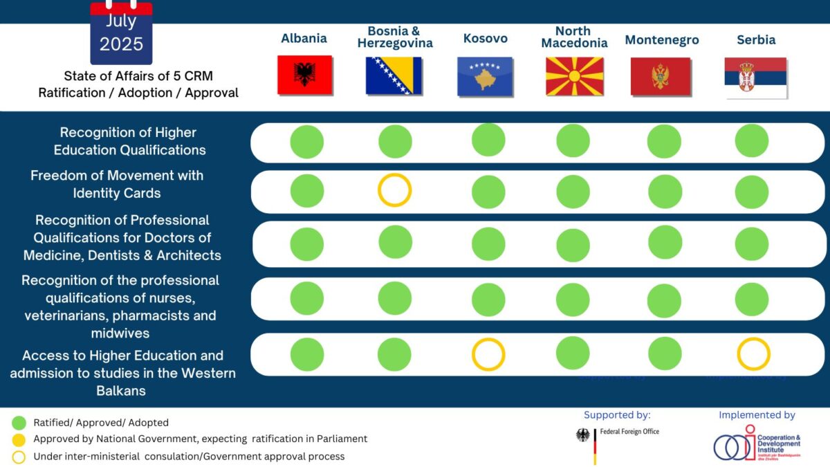 The ratification process of the 5th Common Regional Market (CRM) Mobility Agreement on Access to Higher Education and Admission to Study in the Western Balkans, signed in October 2024, is steadily progressing across the region.