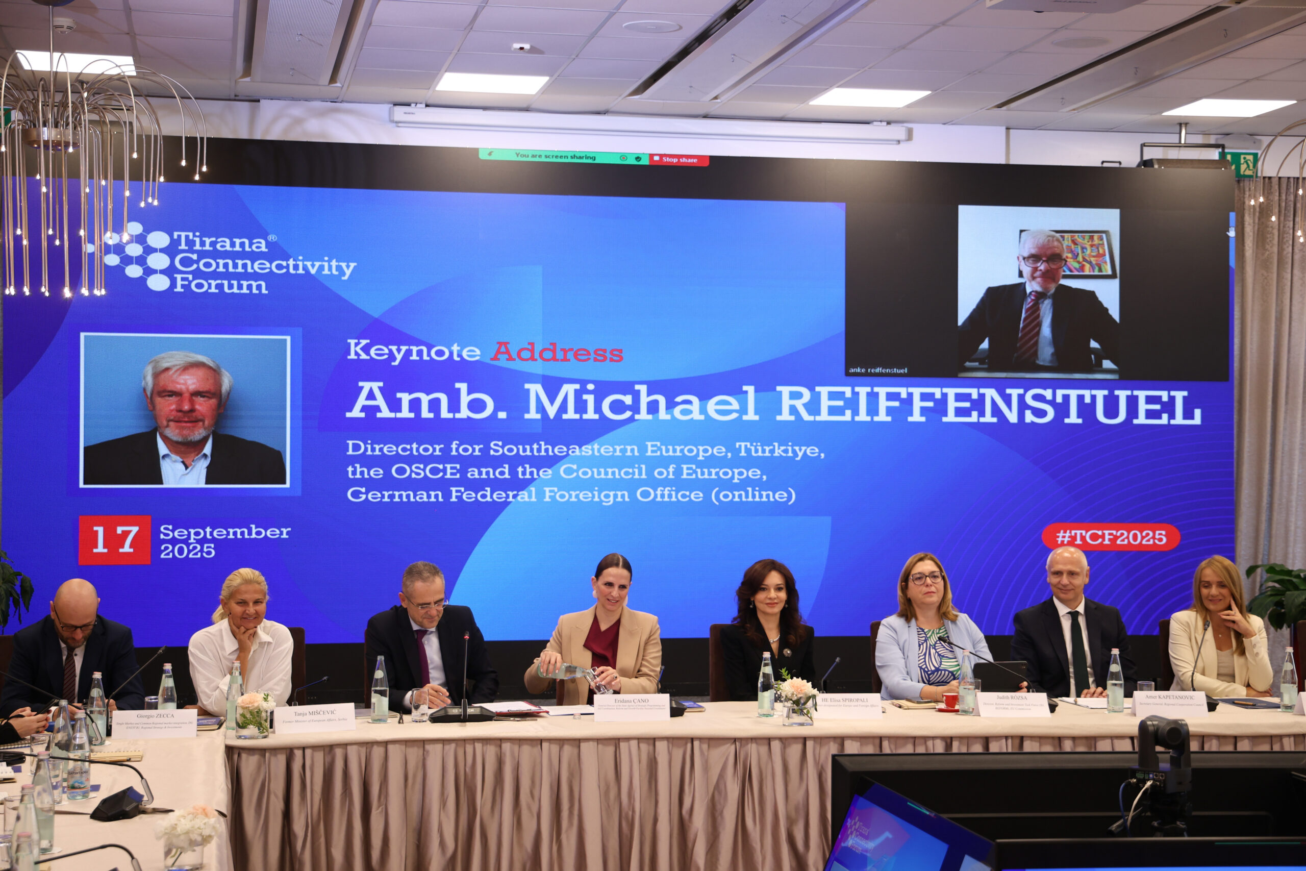Tirana, 17 September 2025 | The resounding message from the opening keynote addresses of the second day of TCF2025 was one of a clear momentum and shared determination for Albania’s accession in 2030. In that endeavor, connectivity is no longer seen merely through infrastructure but as a multifaceted strategy build upon mutual trust, and encompassing economic convergence, improved competitiveness and joint security.