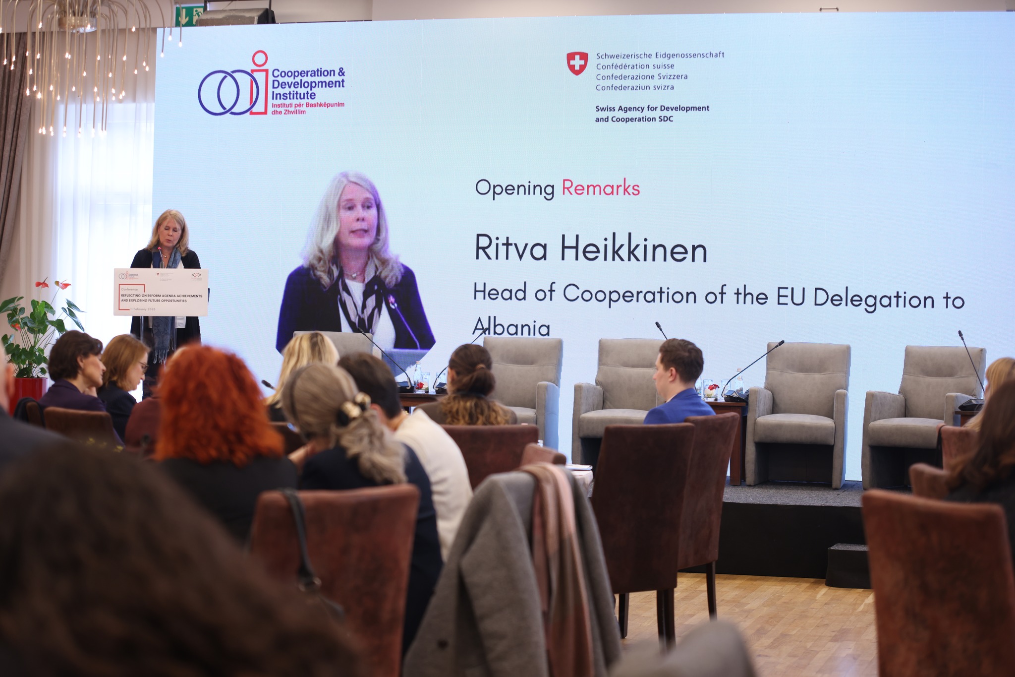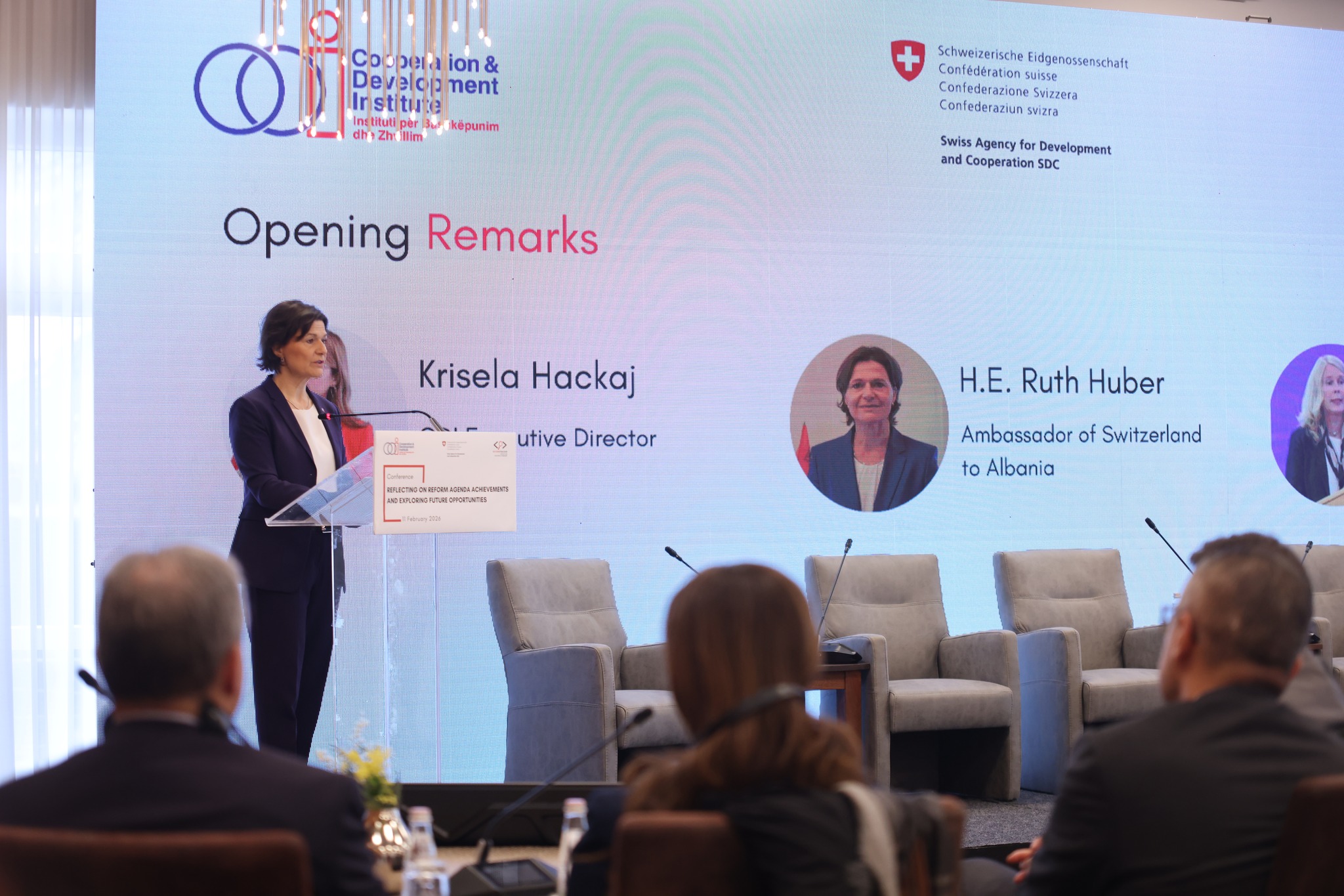 Tirana, 11 February 2026 | Organized by CDI in partnership with the Embassy of Switzerland, the conference “Reflecting on Reform Agenda Achievements and Exploring Future Opportunities,” took place within the initiative focused on enhancing stakeholder engagement and ownership in the implementation of the Reform and Growth Facility.